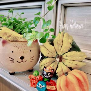 Happy Halloween☆🎃☆ かぼちゃ 木苺の葉(紅葉) 月桃の実 チランジシアイオナンタフエゴ ちょいちょい登場イタズラにゃんこ😸✨ Trick or Treat!!😁✨