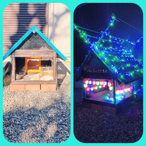 ダリアが終わってしまい、やることが無いので、🐱のシャーの日向ぼっこ用の別荘にデコレーションしてみました⛄🎄✨ 🐈️シャー🐱は迷惑でしょうね😄