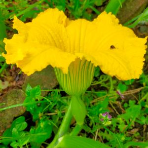 有機肥料として、野菜くずを畑に撒いておいたら、カボチャの芽がたくさん出てきて、花が咲きました✨✨ ツルは小さな畑から飛び出して、駐車場まで進出してます。 カボチャの収穫が待ち遠しいで〜す!