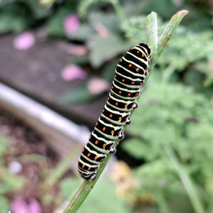 収穫やめて、放置していたパセリに キアゲハの幼虫さんが居た! どうぞ、たんとお食べ❣️うちのパセリ美味しいでしょ?(*^^*)