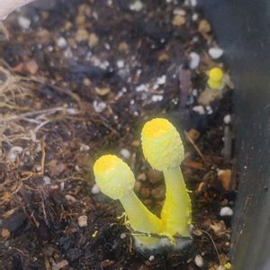 うちの鉢にも生えたー🍄 幸運の黄色いキノコ、とか呼ばれてるけど 植物に影響は?