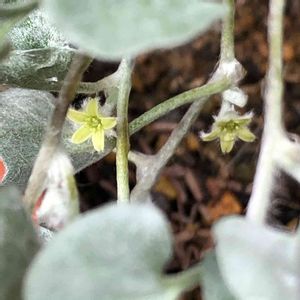 ディコンドラ アルゲンテア ‘シルバーフォールズ’ Dichondra argentea ‘Silver Falls’ ヒルガオ科ディコンドラ属 原産地:アメリカ、オーストラリア、東アジア、ニュージーランド 葉の表面が細かい毛で覆われ銀白色に輝いてとてもキレイです❤️ 新芽もかなり成長したので古い汚い葉を切り戻しました💚 そして、初めて見ました🎶 葉に隠れるような小さな薄い黄色い花✨ めっちゃ可愛い⤴️⤴️