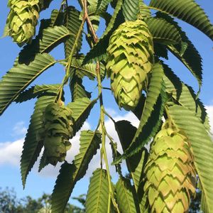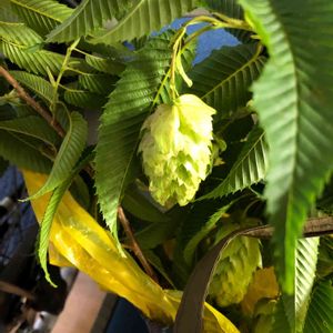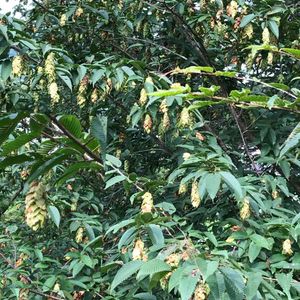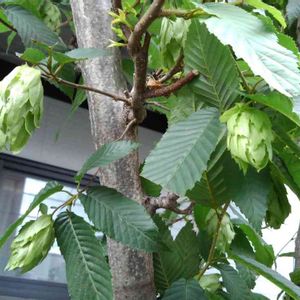 🐶or🐻で悩みました‼️ 結論はクマシデという事で…………🤓 葉っぱの感じが決め手でした。 イヌシデは果穂(シデ)がもう少し小さく、葉もクマシデよりも丸い感じかと思います。 シデ→四手は神社等の〆縄に下がっている白いヒラヒラした紙の事だそうです😌 果穂の部分が神社の四手に似ていることから名前がついているとか‥ GSを始めるまで名前も知らず・調べず ホップみたい❣️と思うだけでした😅🍺