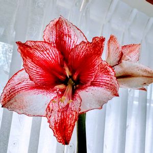 今日のお花 アマリリス❣️ 今春 リビングで咲いた アマリリステンプテーション💕 華やかなお花もイイですね(ʘᴗʘ✿)