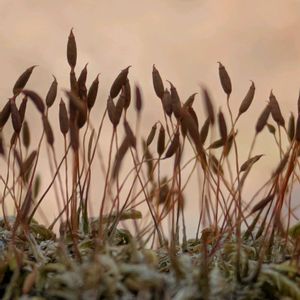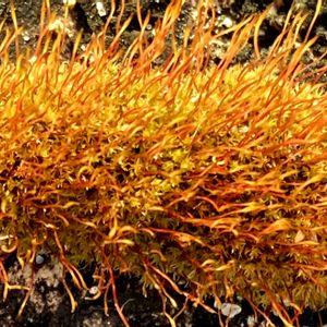 家の上の赤蘚 ヤノウエノアカゴケ キンシゴケ科 ヤノウエノアカゴケ属 日本全土に見られる。 名前の由来は 胞子嚢柄が赤く昔の藁葺き屋根に生えていたことによる。