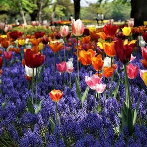 今日のお花「ムスカリ」 国営昭和記念公園 過去picです ムスカリとチューリップのコラボも 流れる川?道?のように植えられたムスカリも すごく素敵でした 今年も見られますように💖🤗