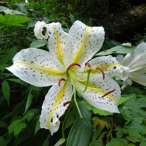高尾山 コオニユリ(小鬼百合)、ユリ科ユリ属の多年草、別名 スゲユリ(萓百合) 🌼花言葉 「情熱」「賢者」「陽気」「愉快」「純潔」「富と誇り」「嫌悪」「荘厳」「華麗」