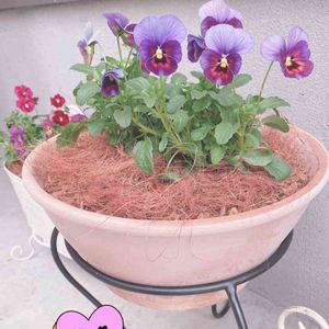 この写真、結構気に入ってます🌸 枝垂れ咲のパンジー、ぶどうももか🍇、タグなしビオラの組み合わせ。 タグなしビオラはやっと咲いてきた一輪。