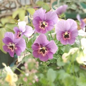 小輪パンジーわらくプチグレース ぶどうももか お花が咲いてきました☺️🌸