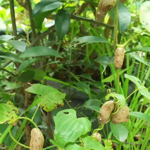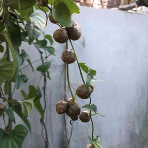 むかご ✊🤛👊こんな形の山芋? ゴツゴツ 硬い 握りこぶしのような 自然薯? 戴き物…フェンスの足下に埋め込んだのは 去年。。。。生きてたんだね~
