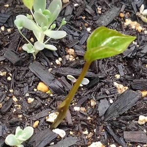 ムカゴを植えてみた やっと芽が出てきた 緑のカーテンになるのはいつ頃かなぁ タープ買った方が早いかなぁ