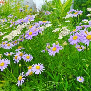 《チョウセンシオン》 チョウセンシオンがたくさん咲いてきました💜✨…とても可憐なお花ですね😊🍀 朝鮮半島原産のキク科の多年草で、観賞用として大正年間に持ち込まれた植物です。 性質は強健で、繁殖力も強いです。 別名…チョウセンヨメナ