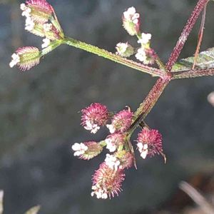 雄藪虱(おやぶじらみ)’19,5,11. 8:04 去年小さい赤色の実をみて花を探し検索してやっと名前がわかった。 1mm位の花が毎日咲き赤色の棘の実になってゆくようだ。実が4~6mm位になると花が終わる。 この棘は先が曲ってるので人の服にくっつきやすいので可愛く無い名前がついてる😡 実物の花も実も可愛いのに😃 藪虱はすこし後から花が咲く。 実は緑色で数が多い。 まだ出会ってないかな