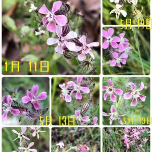 シロバナマンテマ 上左 1月11日新年早々咲いていた。 中 5月13日今年はピンク色のシロバナマ ンテマが多く、白色は少ない。 白い花弁に濃いピンク色が入るのが アカバナマンテマのようだけどこの3 個はアカバナマンテマに入るかな? 下左 5月19日 4月に草刈りされた公園で 右上 普通の花の1/3位の小さいシロバナマ ンテマばかりさいている。 花弁が1mm位草丈5cm位 下中 5月22日 4月に草刈りされた公園 普通のとミニシロバナマンテマが咲 いてた。 下右 5月22日. 草刈りされてない所では、 普通の大きさのシロバナマンテマが 咲いていた。 マンテマの花は白い花弁に濃い紅色が入っている。紅色に白い縁取りがあるように見える 江戸時代にシロバナマンテマより10年位早く渡来したのが野生化した植物。 シロバナマンテマの方が基本種だそうです