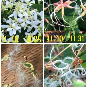 仙人草‘18,11,23 11月10日仙人草の種をこの地大阪で今年初 めて見た 昔加古川で仙人草の種がフワフワの毛になってたのを見て以来大阪で仙人草の花の後楽しみにしていたが剪定されたり種ができなかったりして見ることができなかった 今年は幸運にも11月10日種が出来ていた株が有ったので少し先のつるを部屋に飾った。15日その株の下にフワフワができていた。他の株はまだ蕾が多い。 18日やっと花が咲いてきた。 今日23日、10日に持って帰った種がフワフワのになっていた。葉は枯れたけど。 右上の種は今朝もまだ同じ状態だった。 このまま草刈りされずにフワフワが見られたらいいな🌿🎶😊