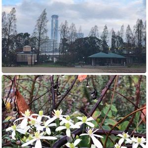 冬の朝の公園’18,12,12. 8:07 この公園も台風21号で沢山の木が倒れた。 メタセコイアはどの木もカッコ良い姿を見せてくれている。 この公園の片隅のセンニンソウ花が他の場所に咲いてるのより少し小さい。 種類が違うのかな。