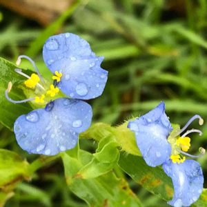 蓬莱ツユクサ‘18,9,8 7:29 ケヤキ、ユリの木、桜の大きな木の幹が折れ散歩しても気持ちが落ち込んでしまう 公園の端で20個位の蓬莱ツユクサが咲いてる。台風の後から咲いたのだね💕😊 植物好きの友人に写メする。 同じ棟なので木々の様子を見て胸が苦しくなってたけどこの写真で気持ちが明るくなったと喜んだ返信がきた いつも9月に入って咲く 水色の2cm弱の花で上を向いて咲くので 群生して咲くととても目立って可愛い💠💕💠💕🎶