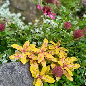 🏷️今日のお花 斑入りホトトギス❁インペリアルバナー 昨日投稿したばかり😅💦🙏 雨もパラパラしただけで 場所がえして、🤳パシャ。 ②奥のカラーリーフに着目👁️🗨️ ③タデ科の ペルシカリアレッドドラゴン ➃タデ科のヒメツルソバ(ポリゴナム) 🌿を見て下さい へぇ~ソックリ(゜o゜; 今まで、全く気が付かず。 勉強になりました。 GSさん 感謝です。🙇♀🙏