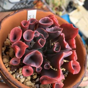 トランペットピンキー、大きくなってきました🙌 アドバイスをいただいた通り、お水をあげる量と頻度を増やしたら外葉があまり枯れなくなりました🙌🙌🙌 アドバイスありがとうございました🙇💦 紅葉のピンクが覚めてしまい、緑になってしまいました。 唇💋だけピンクもかわいいよ❤️