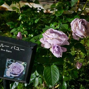 大好きなブルーローズが 開き始めてきました💜 ①②爽(そう)やさしいラベンダーピンクの貴公子です ③④ブルーバユー 開くとまん丸の花びらに 🏷