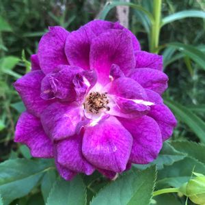 今朝の薔薇🌹 ミッドナイトブルーです。 夏に調子が悪くて強剪定してようやく復活。 小さい花小さい葉ですが色ツヤ良くなってきました。