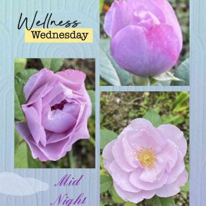四季咲きバラ ミッドナイトブルー 花畑の真ん中で、咲いてきました💜 蕾から咲くまで、二日でした‼️