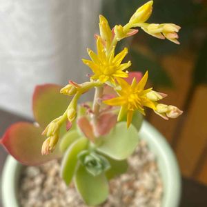 セダム属 薄化粧 色付いてきたなぁーと思い 良く見たら つぼみも ついてました。 黄色いお花も かわいいですよね。 楽しみです。😊😊😊