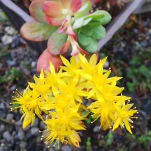 ダンディ邸の玄関で冬の寒さに耐えて多肉植物🪴の花が咲いた!🌼 ウチの奥様が多肉女子ですね🤗 毎日家の中に入れたり出したりと大忙し🤗 お世話のしがいがあったのかな🤗🌸 よく咲いてくれたね🌼 セダム・薄化粧 のようですね🤗 メキシコ原産のベンケイソウ科マンネングサ属の多肉植物
