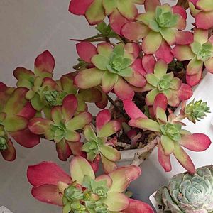 アエオニウム寄植え💚 もうすぐ1ヶ月になり、カットしたレモネード、黒法師さんも元気そうです😃 レモネードさんは少し手直ししなくては 日照不足になりそうです😅💦 今日もボチボチ植替えます♬💚♬