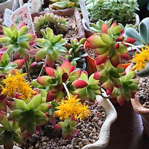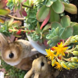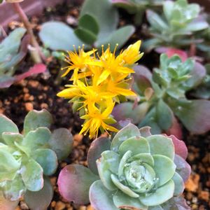 ご近所の多肉植物です。毎年、この時期に黄色い花が咲いています