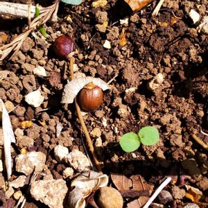 朝の散歩にて、 街路樹の実が落ちていました。 種を3個拾ってきました。🙃