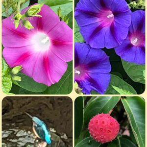 こんにちは😃 あちこち調子を崩し、久しぶりの投稿になります(●´ω`●) ちょっと体力付けようと、お散歩🦮🚶♂️コースを変えて歩きました。 ↖️↗️宿根の様な?朝顔がまだ一面に咲いて綺麗でした💕 ↙️そしてカワセミのつがいでしょうか。 2羽川にずっといて、1メートル位離れた枝に止まり、交互に場所を交代して川の中のエサを探してるのかな⁉️ じっと川を見てます🐦 ↘️私が毎日のように見守っている、 ヤマボウシ🔴 (我が家のではありません😂) もう食べ頃だなぁ😋💕💕