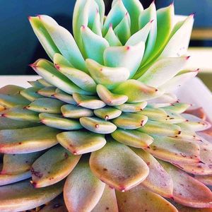 🍀ギルバの薔薇🍀 ミドリんでしたが、周りから紅葉してきました✨(前回は5/8投稿) この子が欲しくて園芸店で探したけど見つからなかったので、ネットで多肉を初めてポチッてお迎えした思い入れのある多肉ちゃんです(*´˘`*)♡ 中心が盛り上がってくる性質らしいのですが、この子はまだみたいです( *´꒳`*)