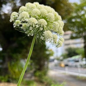 図書館の駐車場のはずれでポツンと咲いていた。これはノラニンジン?(レースフラワーにも似ている)間違ってたら教えてください。 ノラニンジンはお馴染みのオレンジ色ではなく白いニンジンができる。食べることは可能だけど苦味が強烈らしい。白いキャロットラペなんてあったら美味しそうだけど。 昨日撮影