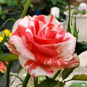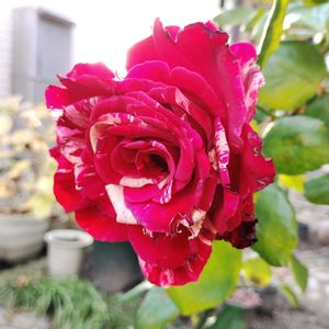 デルバールのバラ クレイジートゥが一輪🌹 蕾がついていたので剪定するのを止めていたけど、開花したのでやっと剪定出来そうです🌿✂️