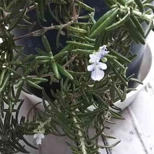台風に備え早めの室内避難。ローズマリーが咲いていたの気づかなかった