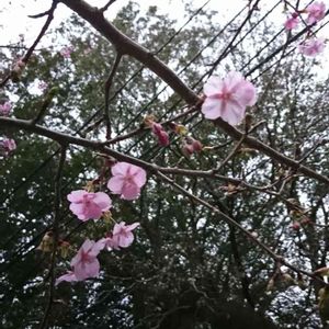 こんにちは🙇家の庭の土手に咲く河津桜です、春がそこまで来てますね🌸。