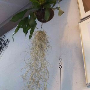 •チランジア ウスネオイデス スネ夫さん調子が良さそう。 もじゃってて 可愛くて 震える。 ハンギングネットでぶら下がってるのは真珠コケモモ。