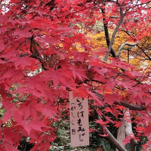 12/4㈭② 🏷木曜日は木 紅葉 高幡不動のイロハモミジは真っ赤に紅葉していました🍁🍁🍁🍁🍁 お寺の黒い建物や鳥居や石はモミジが似合いますね🤗💞