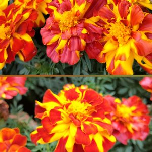 11/2㈰④ 赤が多めの複色のマリーゴールドも個性的で素敵です😄❤️💛❤️ 三角形の花壇の真ん中部分に黄色とオレンジ色が半分以上で、複色は少なめでしたが存在感ありました! 花壇の南側は様々な色のペンタスが咲いていて、 北側はナデシコが少し咲いていました! もう1箇所花壇のある場所はまだ草が伸び放題でガッカリ もう1箇所は大々的に工事中で、公園でなくマンションになるの?と、ポスターをよく見たら、公園をリメイクする工事中でした😄