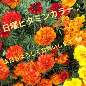 10/26㈰① 🏷日曜ビタミンカラー♪ 本日もよろしくお願いします❤️♥️💗🧡💛 鮮やかなマリーゴールド❤️🧡💛 おはようございます😃足が攣って目覚めました😆布団からでていて寒かったみたいです🤣🤣 風邪はまだ居座ってます🤧😷