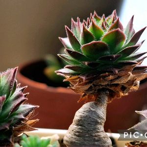 おはようございます☀️ センベル 背伸びしてる🎵 小さなヤシの木🌴みたいです まだまだ幼いセンベルも足下で育っています🎵 これも頂き物なんでいっぱい増えて欲しい多肉です💕