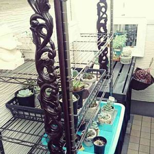 記録その3 多肉棚設置計画の進捗です(^^) 飾りたいものをあれこれ持ってきてみてます。 スチールラックに イカットハンガーを縦にして結束バンドでくっつけてます。 下の階にある多肉たちはまた後日引っ越しさせます。 夏場は遮光必須ですな、、😅
