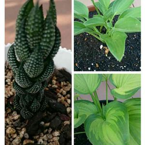 今日の衝動買い そして 植え替え完了 ハオルチアはなんと言う種類ですかね ホスタはサムアンドサブスタンスとグアカモーレです