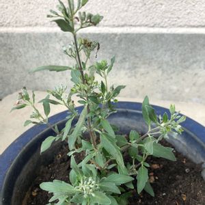 おはようございます☀ 1年前にお迎えした「カリオプテリス スターリングシルバー」。 再びお花をつけてくれました🥰 1年前の寄せ植えそのまま。 そろそろ植え替えした方がいいのかな?