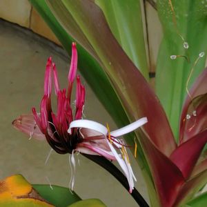 クリナムの蕾が弾けて 今にも咲きそうな雰囲気🌸◦° 2~3日うちには開花しそう(* 'ᵕ' )☆ 楽しみ(´︶`*)~♬♪゚¨ ヒガンバナ科 クリナム属 別名:ハマオモト
