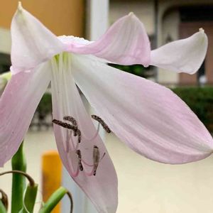 10/25 (日) 🔆 🌿💕クリナム・アジアティカム‘カプリフォリウム💕🌿 ’Crinumasiaticumcv.Cuprifolium ※ヒガンバナ科 ※クリナム属 ♣ボリューム感満点の大型球根植物。大きな銅葉のクリナムは赤紫色の茎と蕾で、開花すると花びらの内側は白色の美しいダイナミックな花。♣ 10/18付、水生植物公園温室内にて撮影📸📱💕💜💚