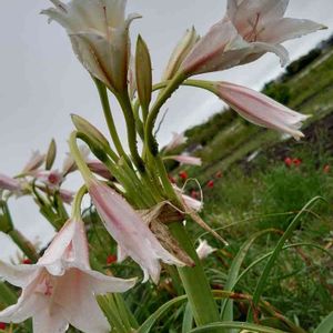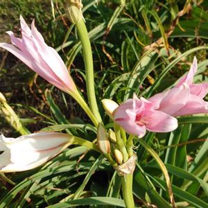 8/6(火)③ クリナム(アフリカハマユウ)が咲いていました🤗🎵 薄いピンク色が涼しげです😉 今日も暑くなりそうですね~😅💦 九州の方々、台風の影響で大雨ですね。お気をつけくださいね。