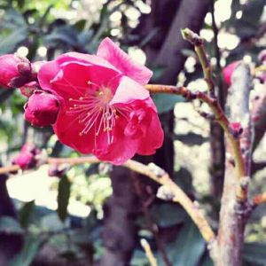 しだれ桃が咲き始めました~✴ 今年仲間入りです❗ 思ったより緋が濃いです~☺