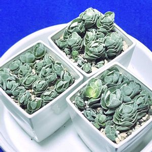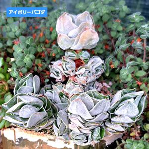 おはようございます☔😃🌤 アイボリー (スーパー) パゴダ🏰 芽キャベツではありません、玉椿 × 神刀、クラッスラ属🥦プチシュー増量中🉐️ 四度目の冬へ、南~無~🎶🔔 よい一日を🐬.。o○🌈🌏